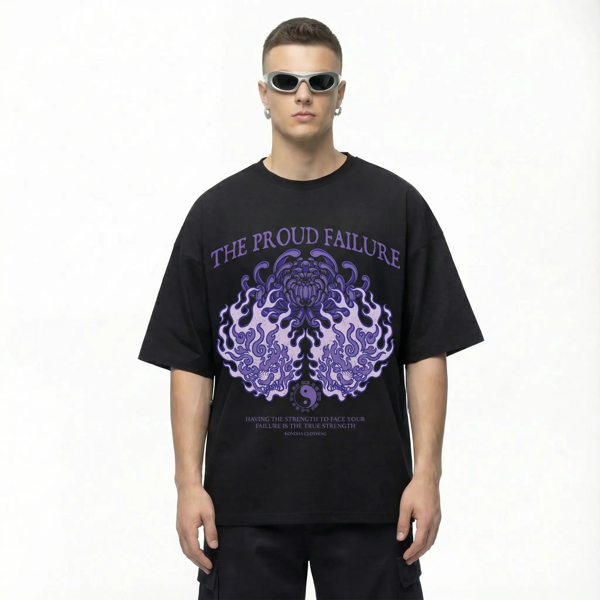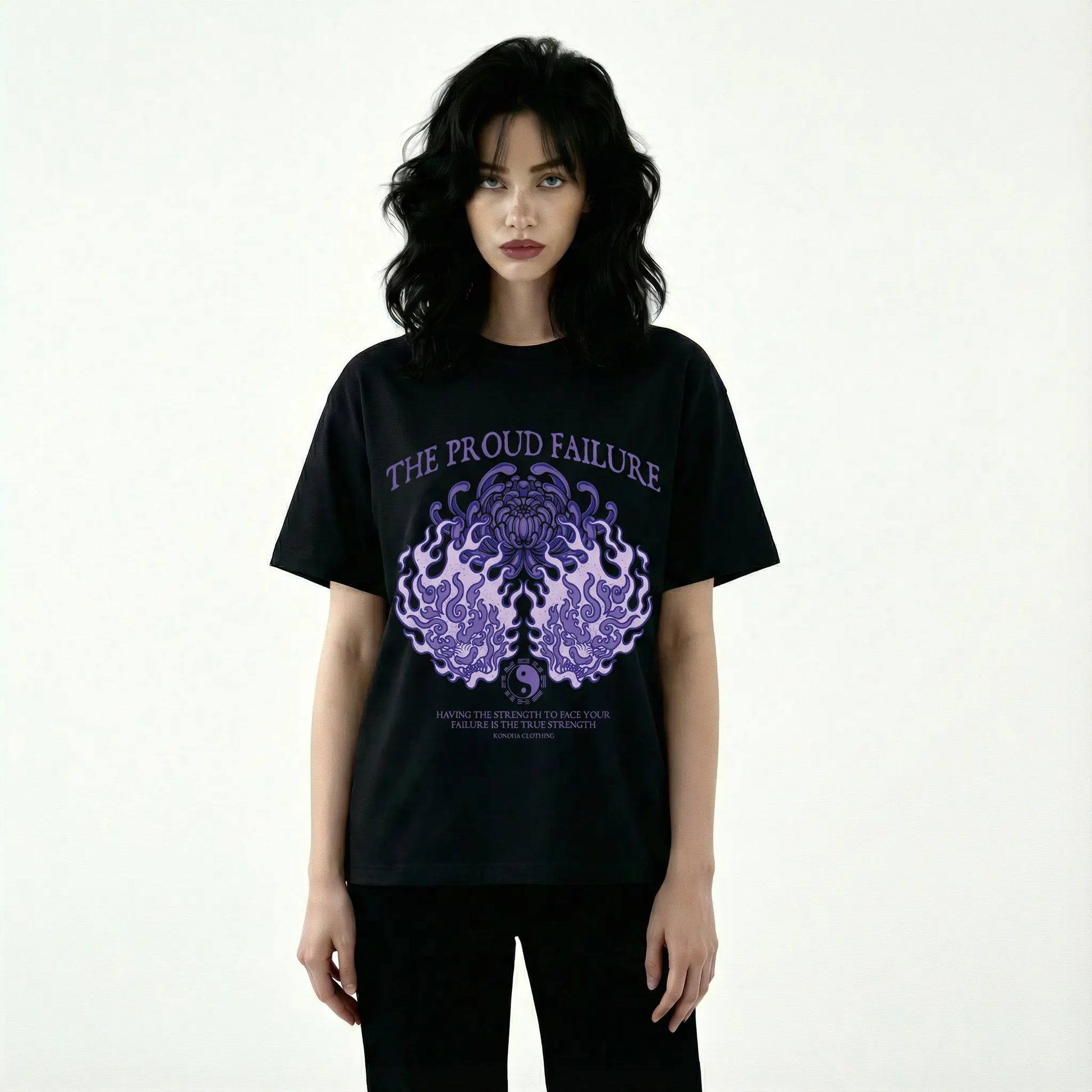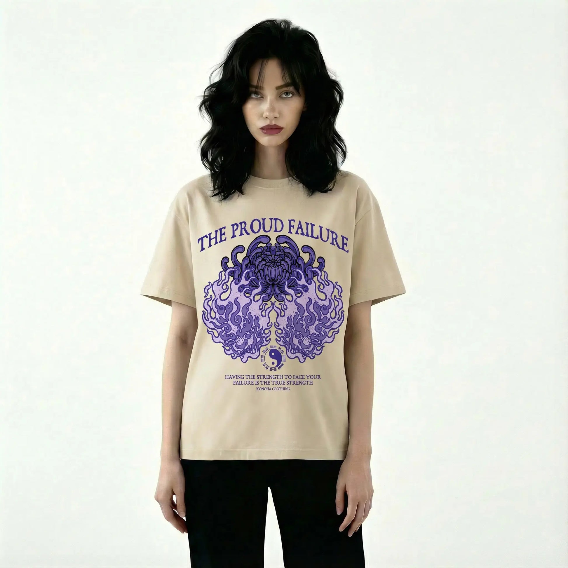 A serene yet powerful streetwear design featuring the elegant Hinata Hyuga. This piece showcases her Twin Lion Fist technique in a fluid, circular motion around a delicate lavender-colored flower, capturing the perfect balance between her quiet grace and her fierce resolve as a shinobi.