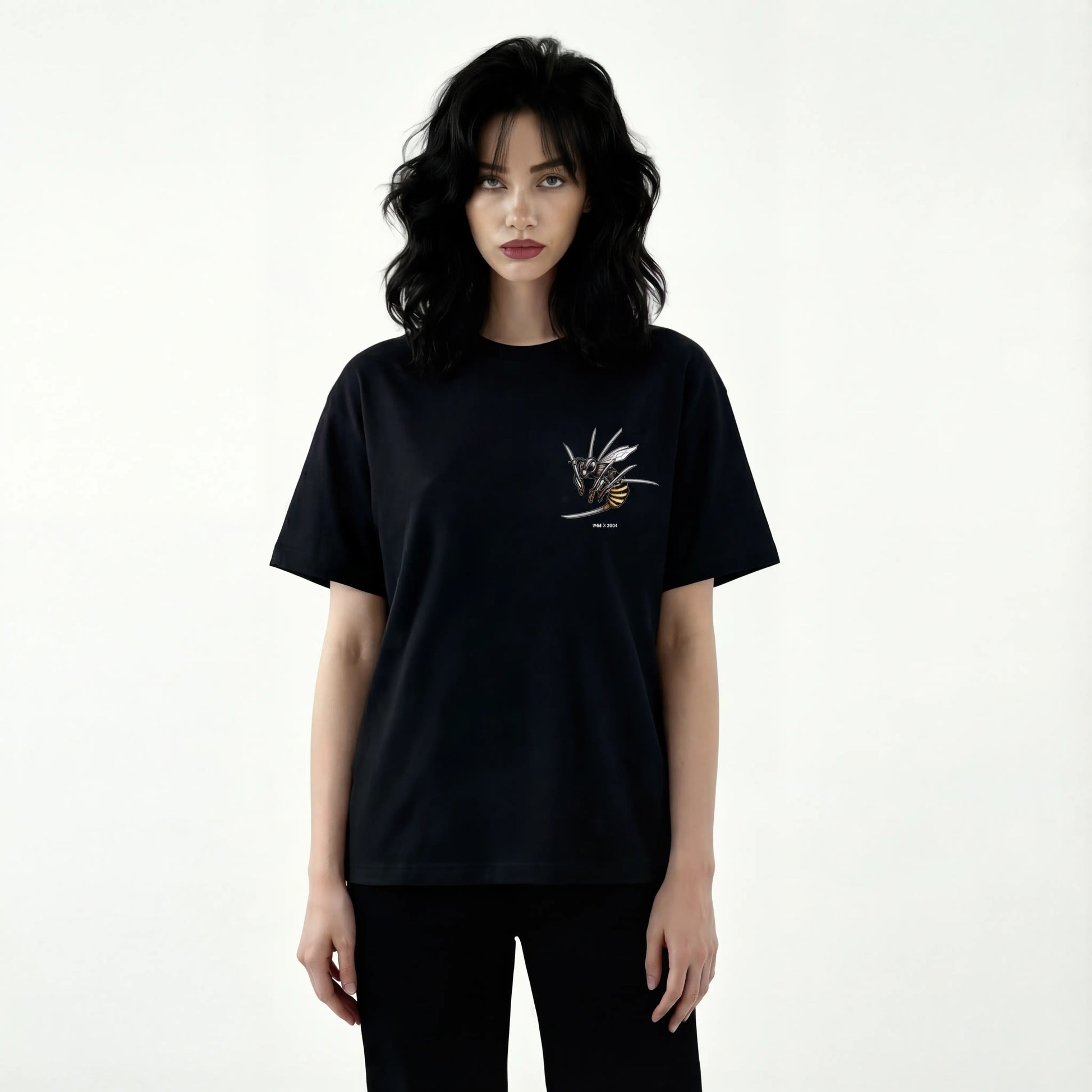 At the forefront stands a version of Killer B inspired by Ol’ Dirty Bastard—a tribute to his unmatched charisma and raw authenticity. The bee on the front represents both Killer B and the Wu-Tang “Killer Bees,” a symbol of loyalty, movement, and collective power. The seven swords reference Killer B’s unique fighting style while also embodying sharp lyricism and layered artistry.